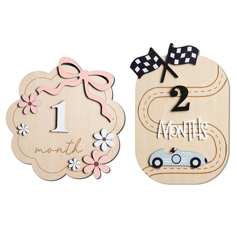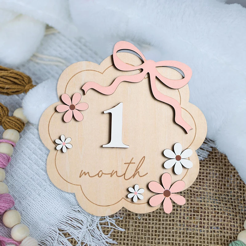 3,Reliable and Delicate: the baby milestone photo props crafted from quality wood, offer a smooth texture; With bright, artistic boho daisy designs, they draw attention and present a 3D aesthetic.
